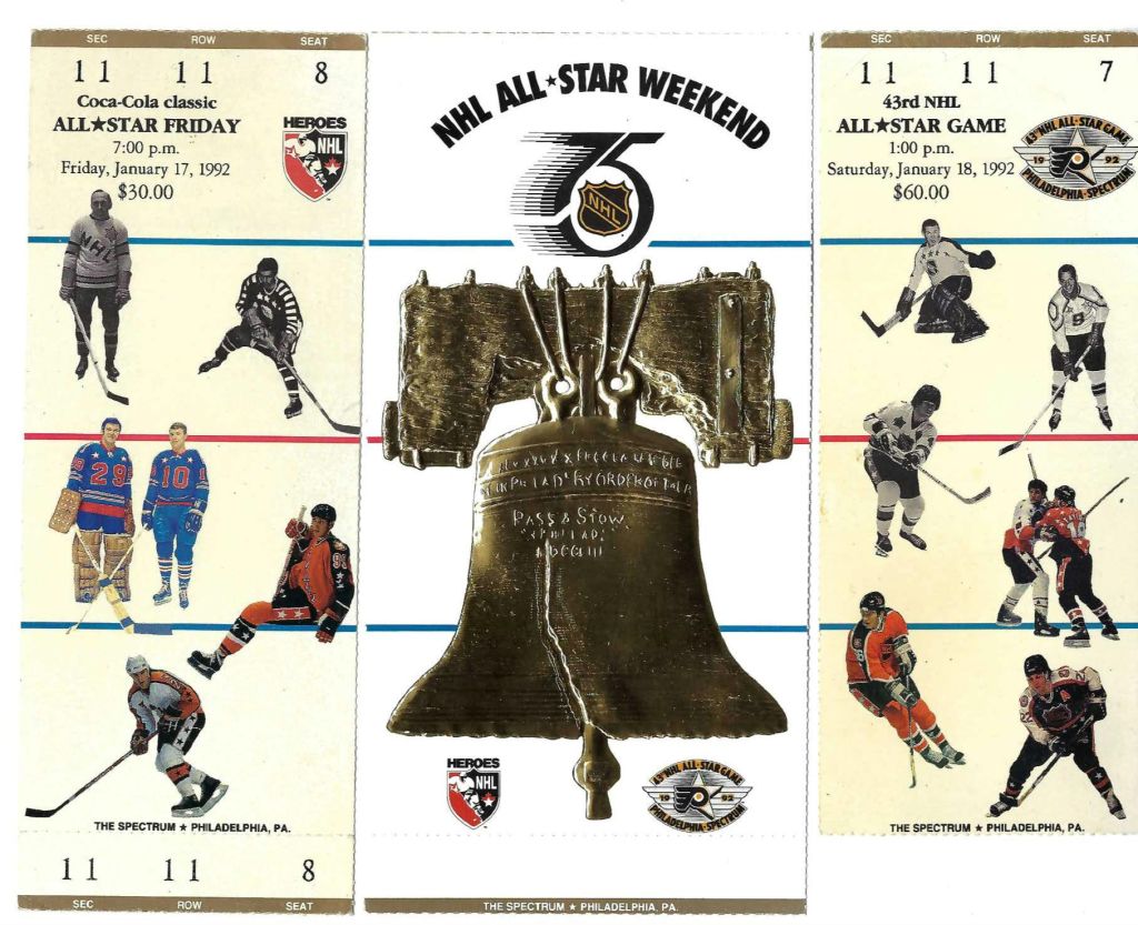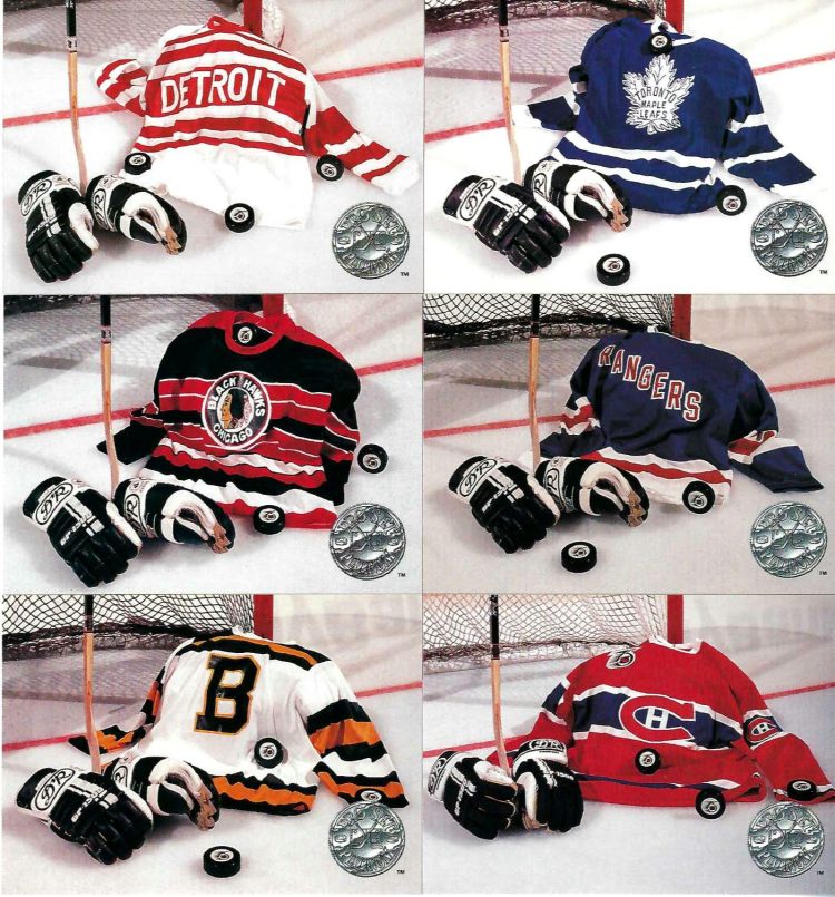 The 1991-92 season marked the 75th anniversary for the NHL and it became a point of focus for the league to treat the year as a series of celebrations honoring their history. The first games of the season saw the original six teams face off against one another, with the visiting teams traveling by train to the host team’s city. Instead of their typical jerseys, the NHL had designed special ones – just for these six clubs – to wear in the games.